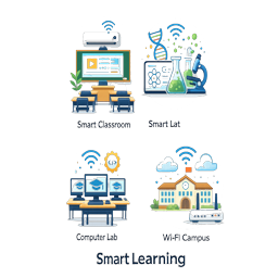 Smart classroom, smart lab, computer lab, and Wi-Fi campus support modern learning.